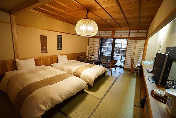 高山市飛驒亭花扇入住:庭付露天風呂付き客室, 房間非常舒適及寬敞,和洋室格局。